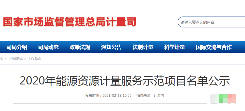 2020年能源資源計量服務示范項目名單公示