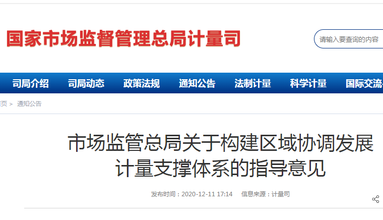 12月11日,市場監管總局發布關于構建區域協調發展計量支撐體系的指導意見的公告,為全面提升支撐區域協調發展戰略實施的計量服務和保障能力,現就構建區域協調發展計量支撐體系提出如下意見