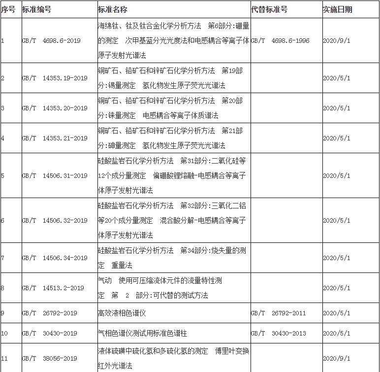 在343項國家標準中有多項涉及儀器儀表分析檢測標準,如電感耦合等離子體原子發射光譜法、原子熒光光譜法、電感耦合等離子體質譜法、傅里葉變換紅外光譜法等。部分信息如下: